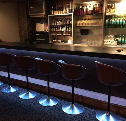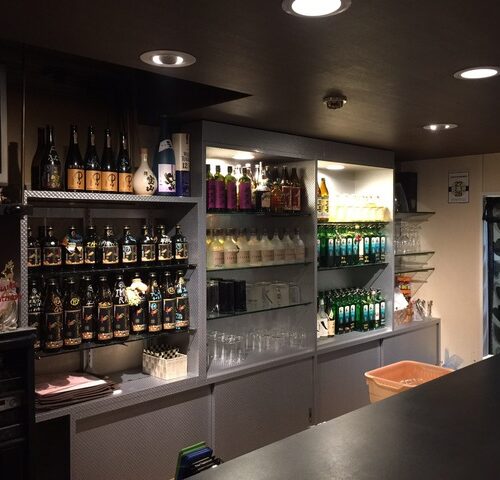薄いピンク色のボトル棚にシルバーのシートを貼りました